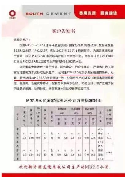 南方水泥客户告知书称,公司生产的M32.5砌筑水泥所使用的熟料、石膏、混合材料与PC32.5R水泥保持一致。
