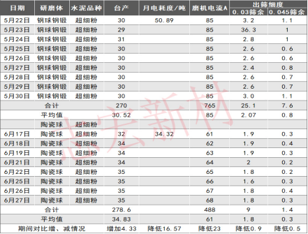 某企业超细掺合矿粉使用特种陶瓷球前后中控画面对比