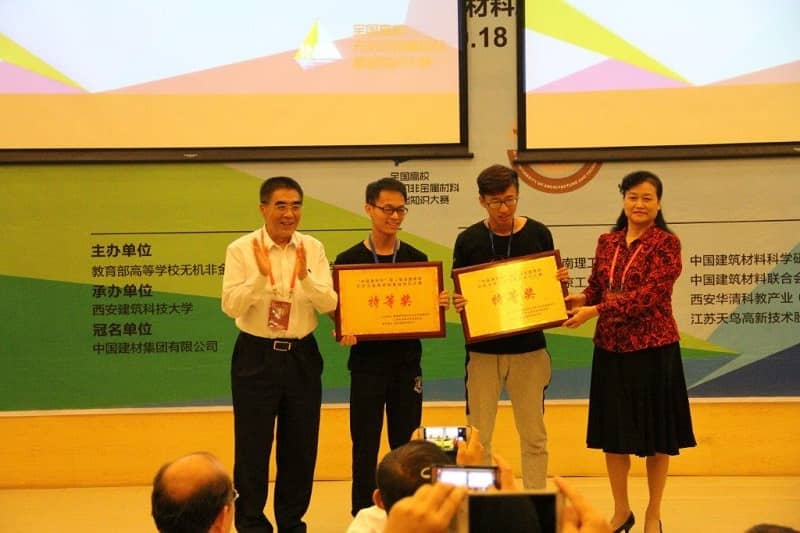 姚燕在致辞中介绍了中国建材集团、中国建材总院和中国建材联合会科教委的现状、发展目标。她讲到,中国建材集团是中国最大、世界领先的综合性建材产业集团,中国建材总院是中国建材与无机非金属领域规模最大、实力最强的科研开发中心,中国建材联合会科教委是由我国建材及相关领域具有丰富经验和知识渊博的专业技术人员、教育工作者组成的行业科技、教育参谋咨询服务机构,这三家单位都非常支持我国高等学校无机非金属材料工程专业教育教学事业的发展,希望更多的材料学子学有所成后,积极投身到中国建材行业,为行业发展添砖加瓦。大赛闭幕式上,徐德龙院士和姚燕教授为获得特等奖的代表队颁发了奖牌。