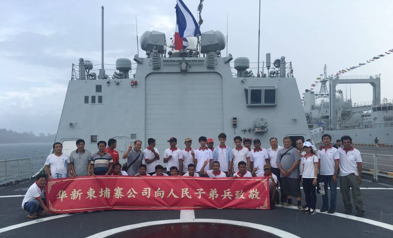 10月16日上午,中国海军第二十三批护航编队湘潭舰、舟山舰和巢湖舰在结束亚丁湾海域护航任务后,经柬埔寨王家军的邀请,抵达柬埔寨西哈努克港,正式开始对柬埔寨进行为期五天的友好访问。得知祖国军舰来访的消息后,华新柬埔寨公司积极组织各部门骨干员工慰问舰上官兵。