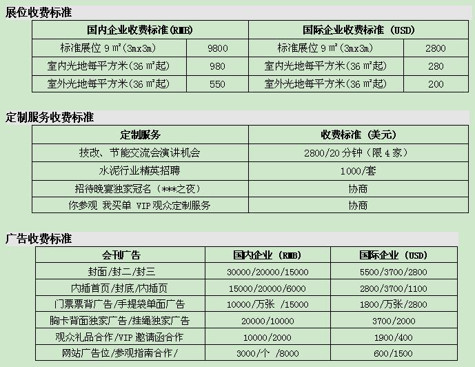 展出范围 l 国内外水泥工程总承包企业; l 矿用各类机械装备; l 新型非金属研磨体; l 粉磨及辅助设备; l 煅烧和冷却; l 预均化堆场与均化; l 输送运输; l 给料与计量; l 协同处置设备及服务; l 散装及袋装; l 耐火材料和隔热制品; l 设备润滑及润滑油的应用; l 工艺过程控制与自动化技术; l 传动设备; l 环保除尘、脱硫脱硝; l 废弃物及其处理利用技术及装备 l 水泥生产企业、科研机构、技术改造、生产建设、监理、协会、媒体等。 l 金融投资机构、国际贸易公司等