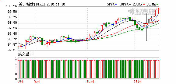 美元周二小幅上涨,实现七连涨。美元早间曾跌至99.50附近,不过此后,良好的美国经济数据再度支撑美联储年底升息预期,支撑美元重新站上100关口。