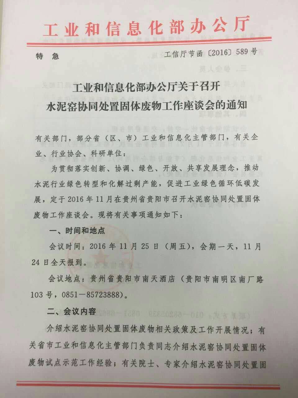 水泥窑协同处置工业废物工作座谈会的通知