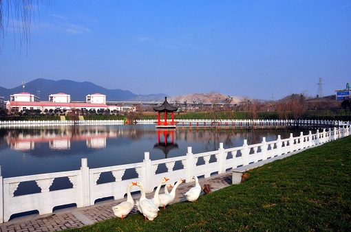 走进中材安徽厂区,首先映入眼帘的是一片人工湖,波光粼粼的湖面上,不断有鱼儿跃起,野鸭和鹅儿在畅游……