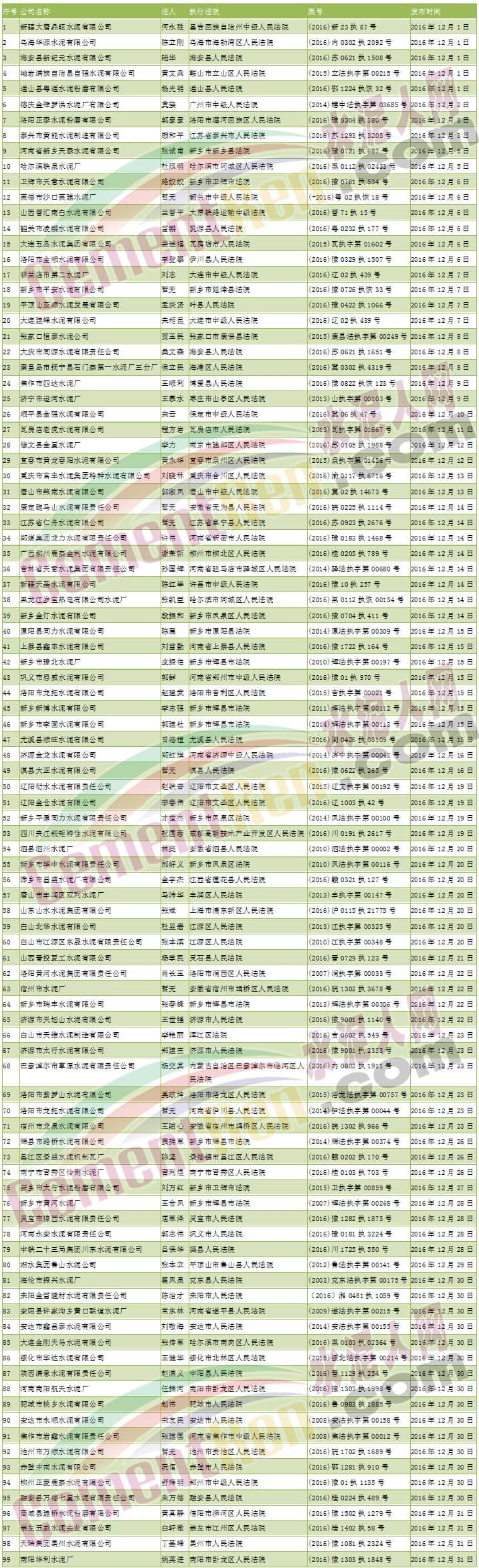 “人无忠信,不可立于世”,对于企业来说也是如此。诚信是一个企业生存和发展的基石,很多水泥企业在发展的过程中,往往把诚信看得特别重要,但是当诚信遇上利益之后,很多水泥企业都是以利为先,诚信则被完全忽视,这也是目前很多国内许多小型水泥企业无法办强办大的原因。据水泥人网统计,2016年12月被通报的失信水泥企业高达99家,其名单如下: