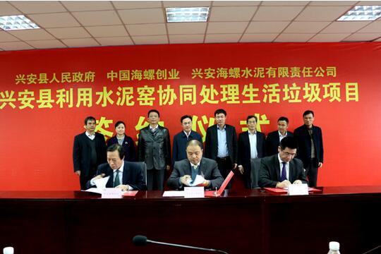 近日,海螺创业与兴安县人民政府正式签署《利用水泥窑协同处理生活垃圾项目投资协议》。该项目日处理能力达300吨/天,力争一年建成投运。