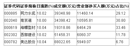 与此同时,在今日登陆深交所龙虎榜个股中,营业部净买入超1亿元公司有2只,其中主板1只,中小板1只。具体来看,同力水泥今天是资金最青睐个股,营业部净买入金额达1.15亿元,高居榜首。此外,南京港营业部净买入金额也排名居前。(因交易所数据不同步,上交所龙虎榜数据稍后发布。)