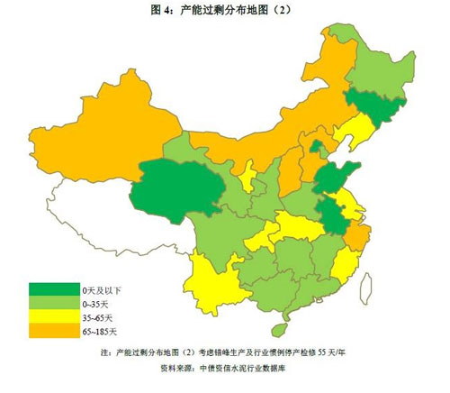 根据产能过剩分布地图(2),考虑错峰生产及行业惯例55天/年停产检修期后,各区域产能过剩矛盾有所缓解,然而尽管错峰停窑时间较长,但晋蒙和新疆地区产能过剩矛盾依然突出,未来简单依靠错峰改善供需格局的空间较为有限,短期内恐难走出低迷。