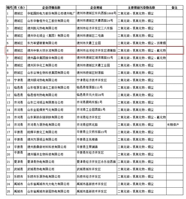 (德州中联大坝水泥有限公司),2017年表中所涉及的企业可能会被被被重点监控。