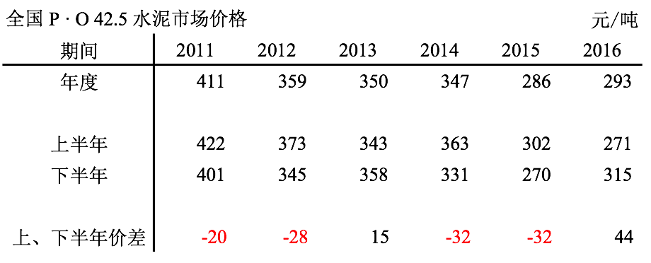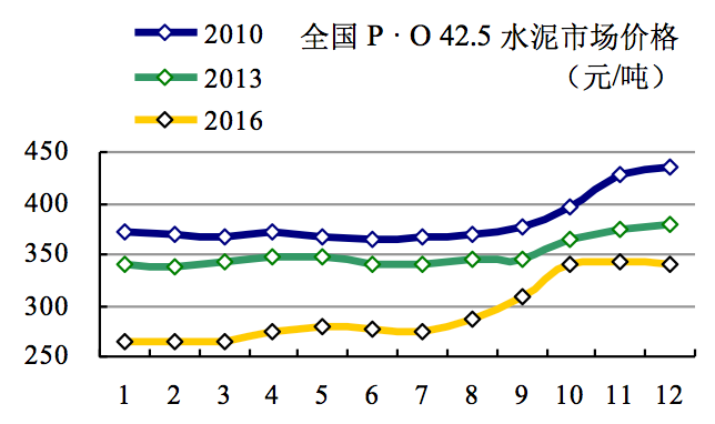 1) 水泥价格落在341元/吨,非常适中,不高不低,有弹性空间;