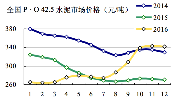 2016年已近年关,年初年末水泥价格两重天,水泥价格是衡量市场好还的晴雨表。年初价格265元/吨,是2005年以来价格最低一年,并且首度跌破300元/吨;价格上行压力山大。