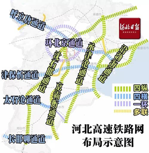 境内国家高速铁路网主通道基本贯通,覆盖各设区市(含定州、辛集)。