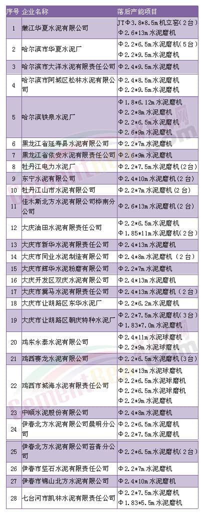 根据国家环境保护部《关于印发水泥玻璃行业淘汰落后产能专项督查方案的通知》(环明传〔2017〕1号)要求,现将黑龙江省水泥企业落后产能项目名单公开如下: