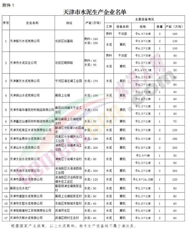 天津市工业和信息化委今日公示天津市水泥、玻璃行业产能现状清单,17家水泥企业被公示。其中区域水泥龙头天津山水水泥有限公司、天津冀东水泥有限公司、天津天瑞水泥有限公司均在其列。根据国家产业政策所列17家水泥企业所属水泥熟料、粉末生产设备均不属于淘汰类。