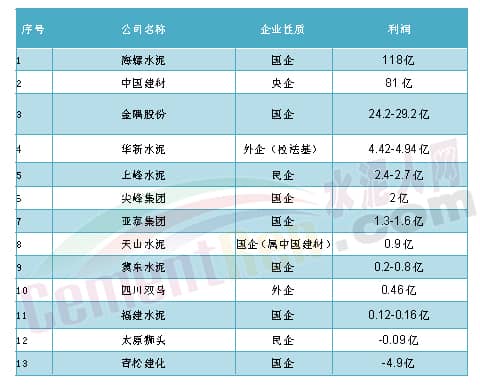2016年我国水泥行业实现利润518亿元,从上表我们可以看出,国企海螺水泥去年瓜分了全国水泥行业利润的22.8%,央企中国建材瓜分了15.6%,国企金隅股份瓜分了4.8%。以上列表中的几个国企所占利润合计为去年全行业利润的近45%。而民企,产能占比小,规模小,瓜分的利润也相对少很多。