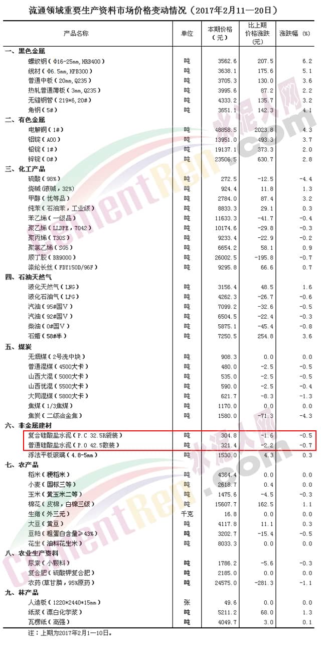 据对24个省(区、市)流通领域9大类50种重要生产资料市场价格的监测显示,2017年2月中旬,与2月上旬相比,22种产品价格上涨,20种下降,8种持平。