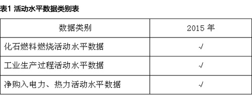 水泥企业所涉及的活动水平数据类别见表1