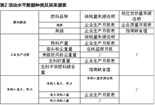 水泥企业涉及到的所有活动水平数据种类及来源详见表2