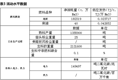 水泥企业活动水平数据详见表3
