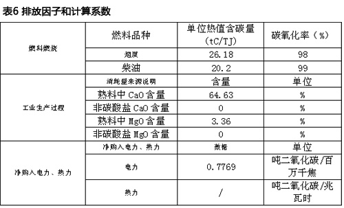 水泥企业排放因子具体数据见表6。