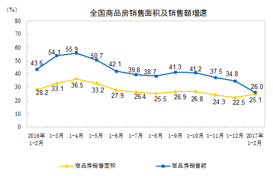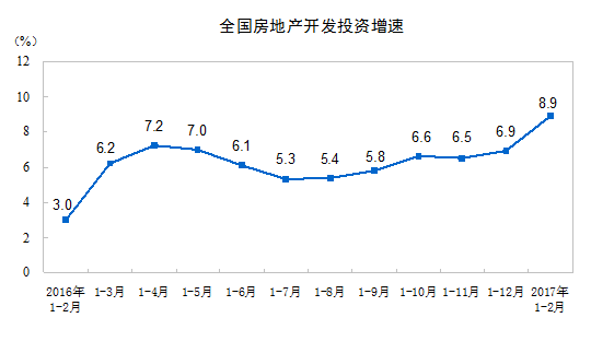 今日国家统计局发布了2017年1-2月份全国房地产开发投资和销售情况,具体内容如下: