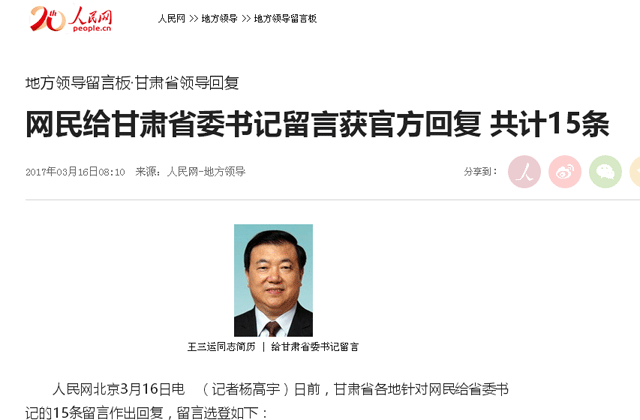 今日,网民给甘肃省委书记的留言获官方回复的新闻呈现于网络,其中有一条引起水泥人网小编的关注: