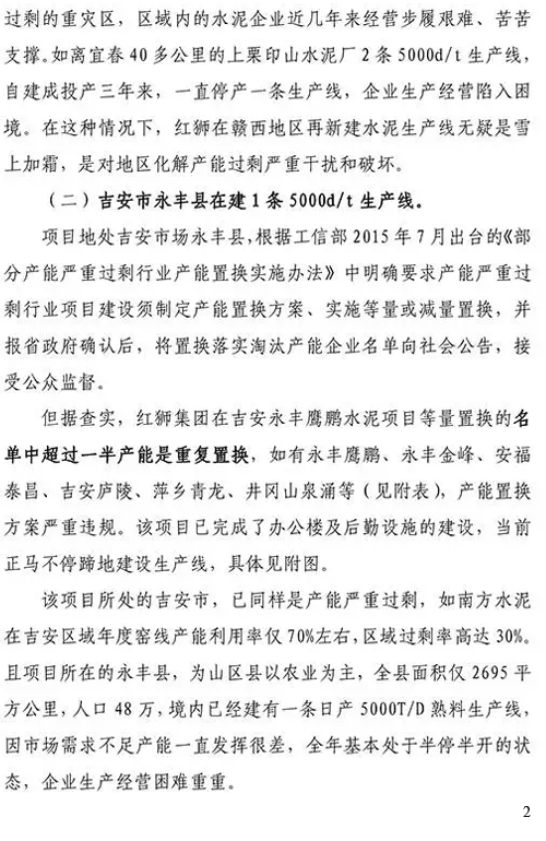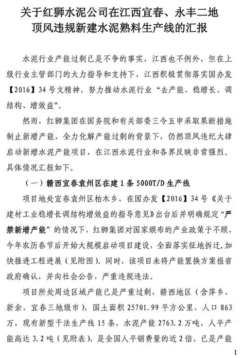 近日,水泥人网又接到举报,举报红狮水泥在江西、广西违规新建、批小建大、无证开采。红狮水泥真是一波未平一波又起。不久前,湖南永州东安红狮水泥违规新建生产线被几百人联名举报,引起了社会的热议,国家工信部、湖南省经信委正在调查此事,这个调查结果还没出来,这又出现新的举报材料,违规举报材料如下: 关于红狮水泥公司在江西宜春、永丰二地涉嫌违规新建水泥熟料生产线的举报材料如下: