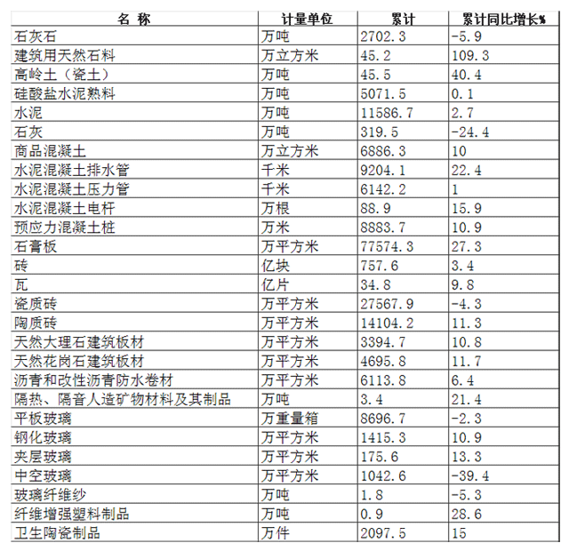 (二)产品产量大多保持增长。2016年,全省纳入统计范围的27种建材产品中有21种产品产量保持增长,其中增长率超过10%的产品有15种。