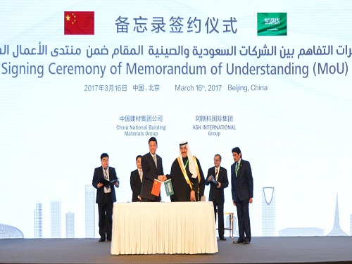 3月16日,在沙特国王萨勒曼访华其间,中国建材集团作为中方企业代表应邀参加了在中国大饭店举行的中沙投资论坛系列活动。集团董事长宋志平应萨勒曼国王的特别邀请出席了商界领袖闭门会议。论坛上,中国建材集团与沙特ASK集团签署了战略合作协议,受宋志平董事长委托,集团副总经理黄安中代表公司与沙特ASK集团总裁签署协议。