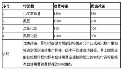 福建省初始排污权指标有偿使用费收费标准