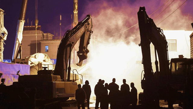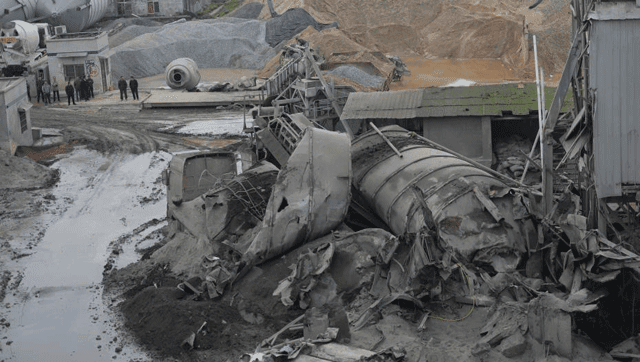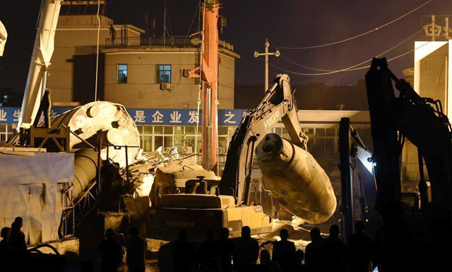 记者了解到,由于倒塌的水泥罐体过重,现场两台重型200吨吊车一时无法实施救援。目前,现场施救人员正在对倒塌的水泥罐体进行逐一吊离施救。