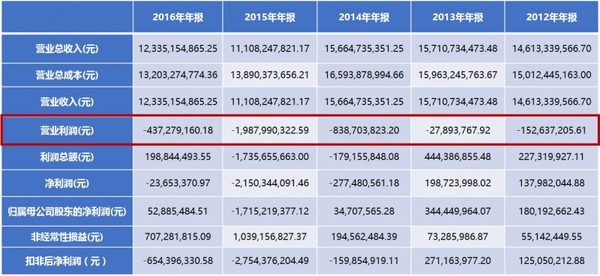 数据显示,冀东水泥2012至2016年,连续五年营业利润为负。