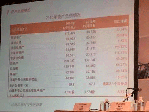 金隅冀东战略重组后,金隅股份到2016年底总资产同比增加了超过一半,达到2083.9亿元。