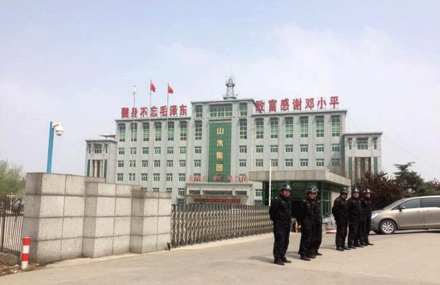 4月11日,记者来到位于济南市长清区崮山镇山水工业园的山东山水水泥集团有限公司总部,首先看到的就是山水水泥集团正门外一排列队的安保人员,而在集团办公大楼下的广场上,也有数位安保人员列队把守。