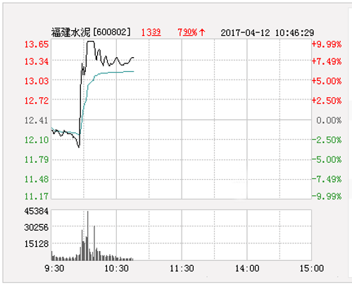 今日福建水泥(13.31 +7.25%,买入)开盘报12.31元,截止10:05分,该股涨9.99%报13.65元,封上涨停板。