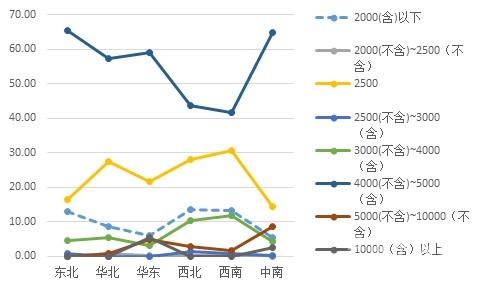 图3:六大区域新型干法熟料生产线按规模分布情况(%)