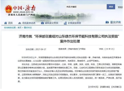 济南查处"环保部督查受阻":4人被传唤 公司停业