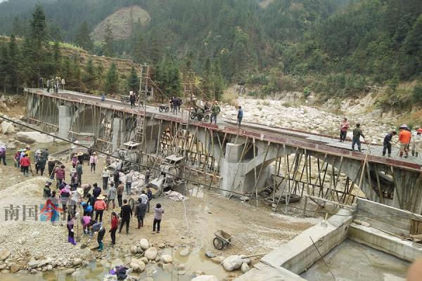 从去年11月起,廖克庆等5户人再也没有外出打工,每天都在工地上忙碌。村上的居民纷纷加入到桥梁的施工中。