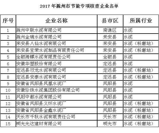 近日记者从滁州市经济和信息化委员会了解到,市经信委近期接省经信委通知,今年将按工信部《2017年工业节能监察重点工作计划》要求,全面核查2016年水泥、平板玻璃行业企业单位产品能耗水平和能耗限额标准执行情况;对实施水泥行业行业阶梯电价政策执行情况进行专项监察。 因时间紧,任务重,市经信委要求各有关县市区抓紧时间通知属地企业按照要求准备自查报告和表格材料,并于4月28日前将电子版材料统一收集后报送至市工业节能监测中心,具体现场核查时间将另行通知。