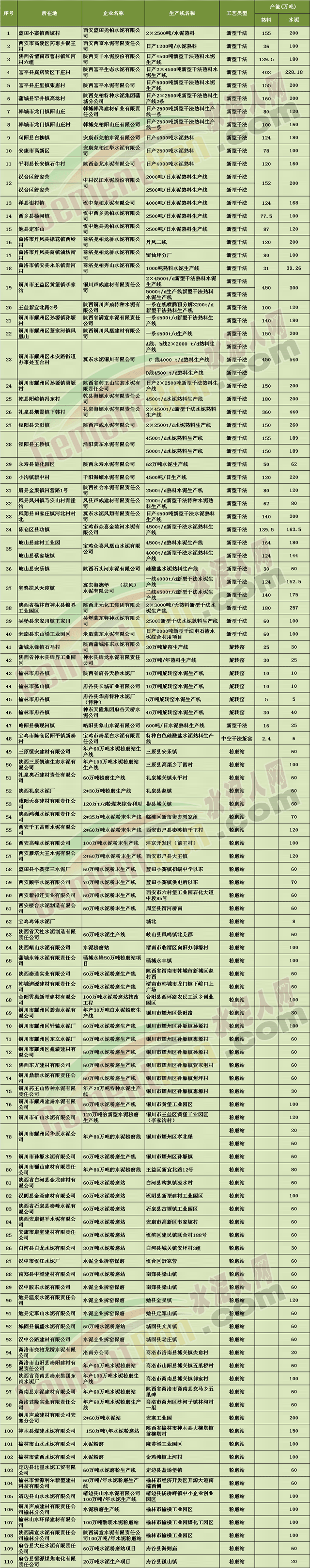 陕西省水泥企业清单