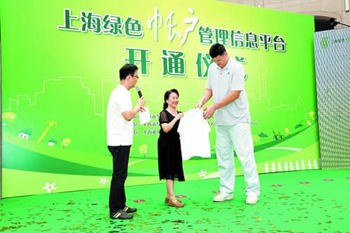 2014年9月16日,在上海静安寺广场举行的上海“绿色帐户”信息化平台开通仪式上,全国政协委员、著名运动员、热心市民姚明向市民朋友们呼吁,积极参与垃圾分类,一起为上海的环境更美而努力。