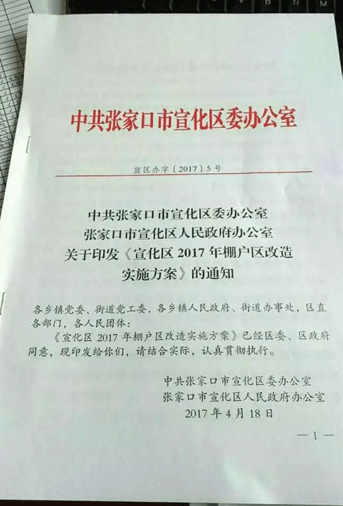 宣化区委办公室宣化区政府办公室关于《宣化区2017年棚户区改造实施方案》的通知