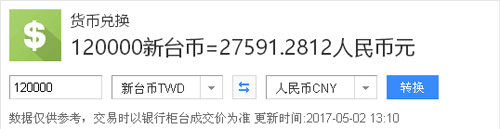 12万台币兑换人民币约27591元