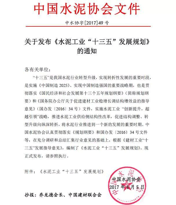 水泥工业“十三五”发展规划前言:水泥工业是我国国民经济发展的重要基础原材料工业。“十二五”期间,水泥工业在转变发展方式、促进结构调整、实施“创新提升,超越引领”发展战略、推动科技创新与进步、提升发展水平、加快节能减排和绿色发展与“走出去”等方面取得了长足进步,水泥行业呈现出结构调整与转型升级向纵深转折,发展向中高端和高端发展转变。但是,多年来积累的结构性矛盾和以投资增量为主的增长方式带来的产能严重过剩的矛盾日益显现。