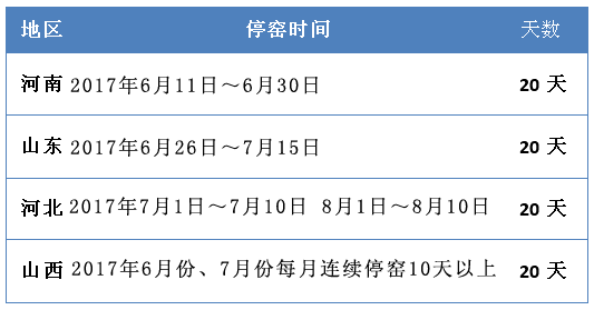 最新晋冀鲁豫四省错峰生产时间计划表