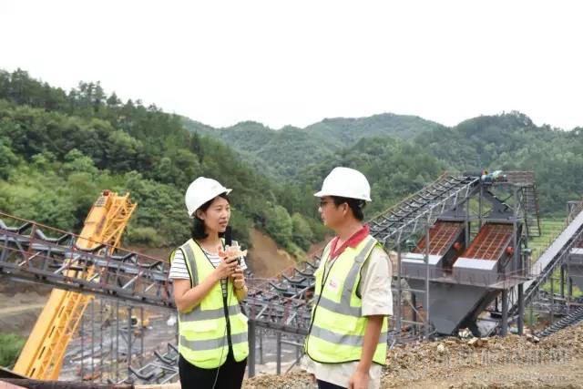 据全程参与生产线建设的湖南服务中心工程师郭学志介绍,该生产线分为一期工程和二期工程,一期破碎、筛分、出料环节已于2017年7月全部建设完成,二期工程即将开始,将建设存储量3000吨的中转料仓和制砂机。