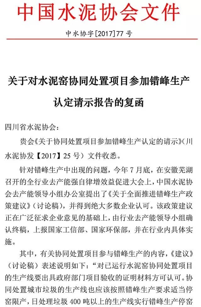 昨日(22日),中国水泥协会回复四川省水泥协会的公函中再一次明确,水泥窑协同处置生活垃圾和危险废物生产线遇错峰生产并不能“免疫”。一则需降低生产负荷,二则需按相应产能适当停窑限产。