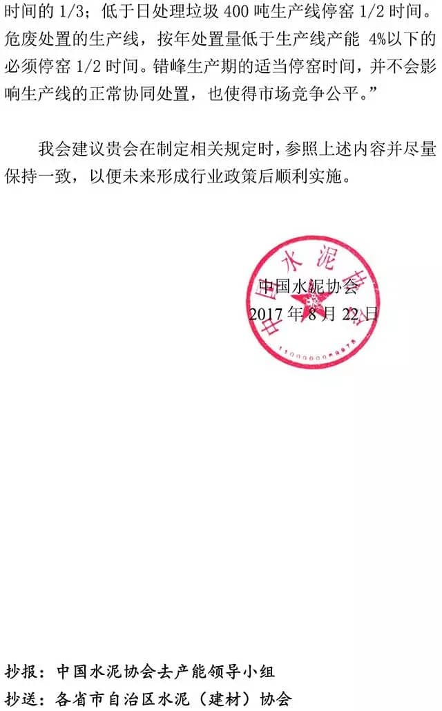 错峰生产期的适当停窑时间,并不会影响生产线的正常协同处置,也使得市场竞争公平。