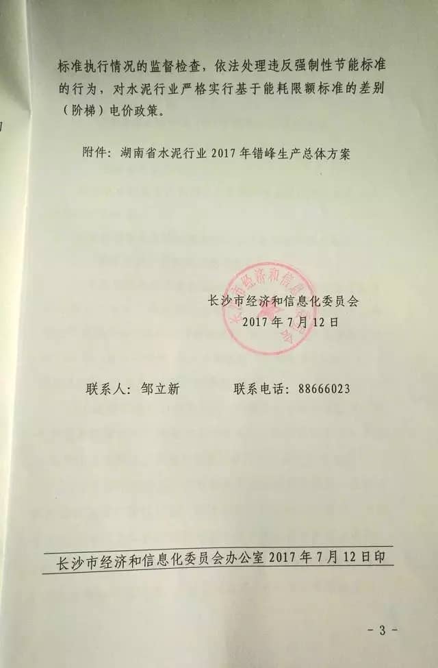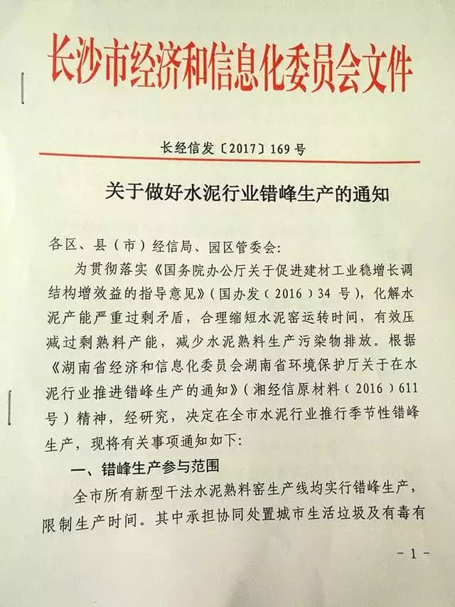 据了解长沙市本次发布的错峰生产通知是依据2016年12月17日通过的《湖南省水泥行业2017年错峰生产总体方案》执行的。