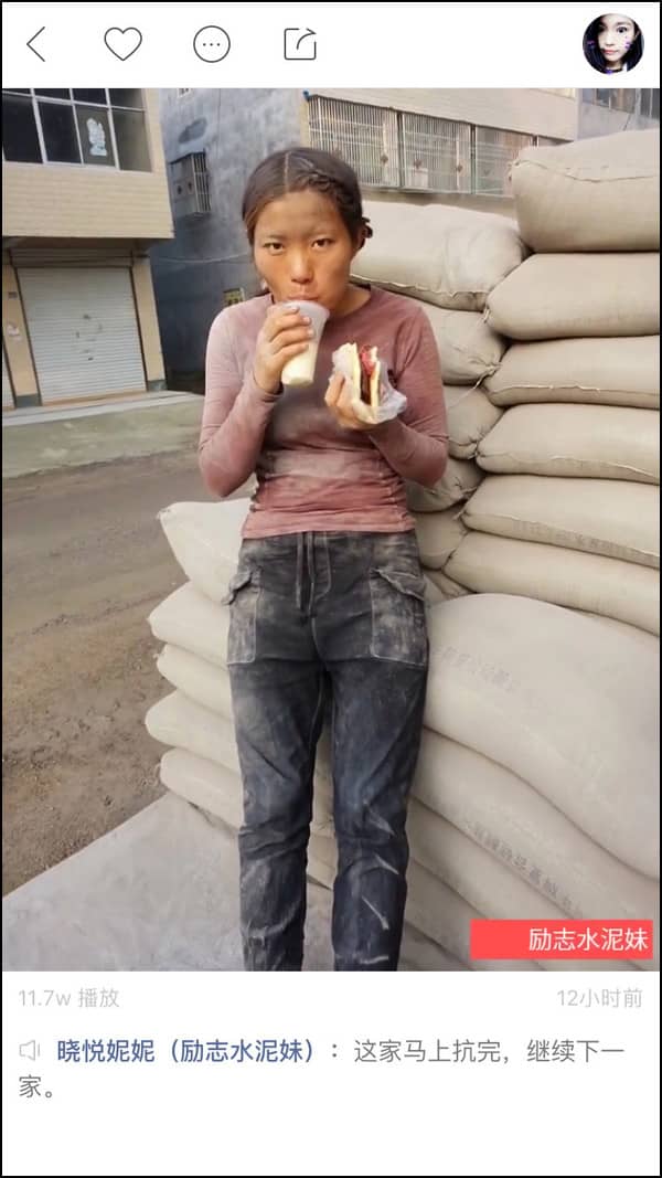 被称作“网红水泥妹”的她,在视频里扎着高马尾,娴熟利落地将一袋袋水泥搬上车或卸下,头发、脸部、四肢都落满水泥粉尘。